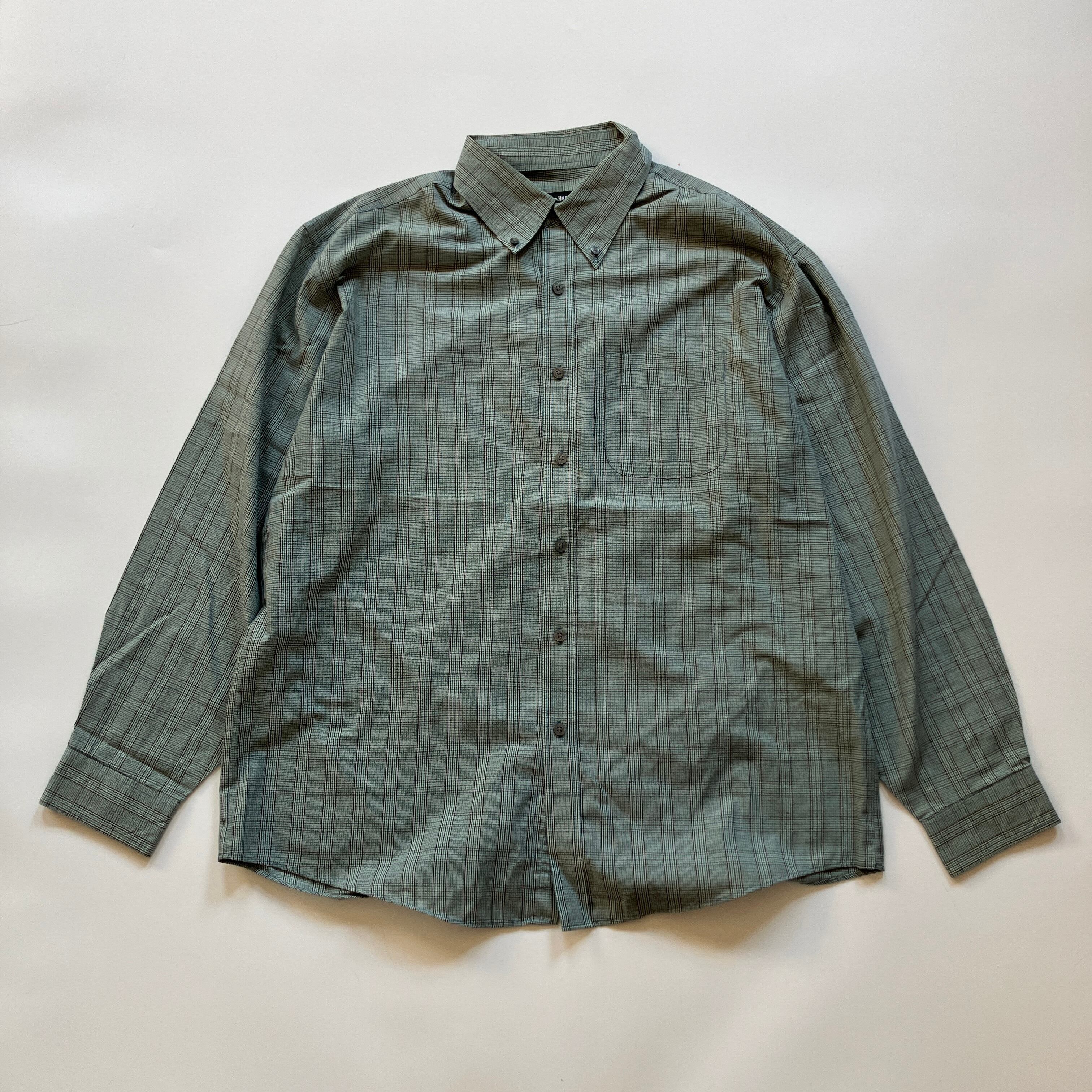 USED 90S Van Heusen GREEN CHECK L/S SHIRTS
