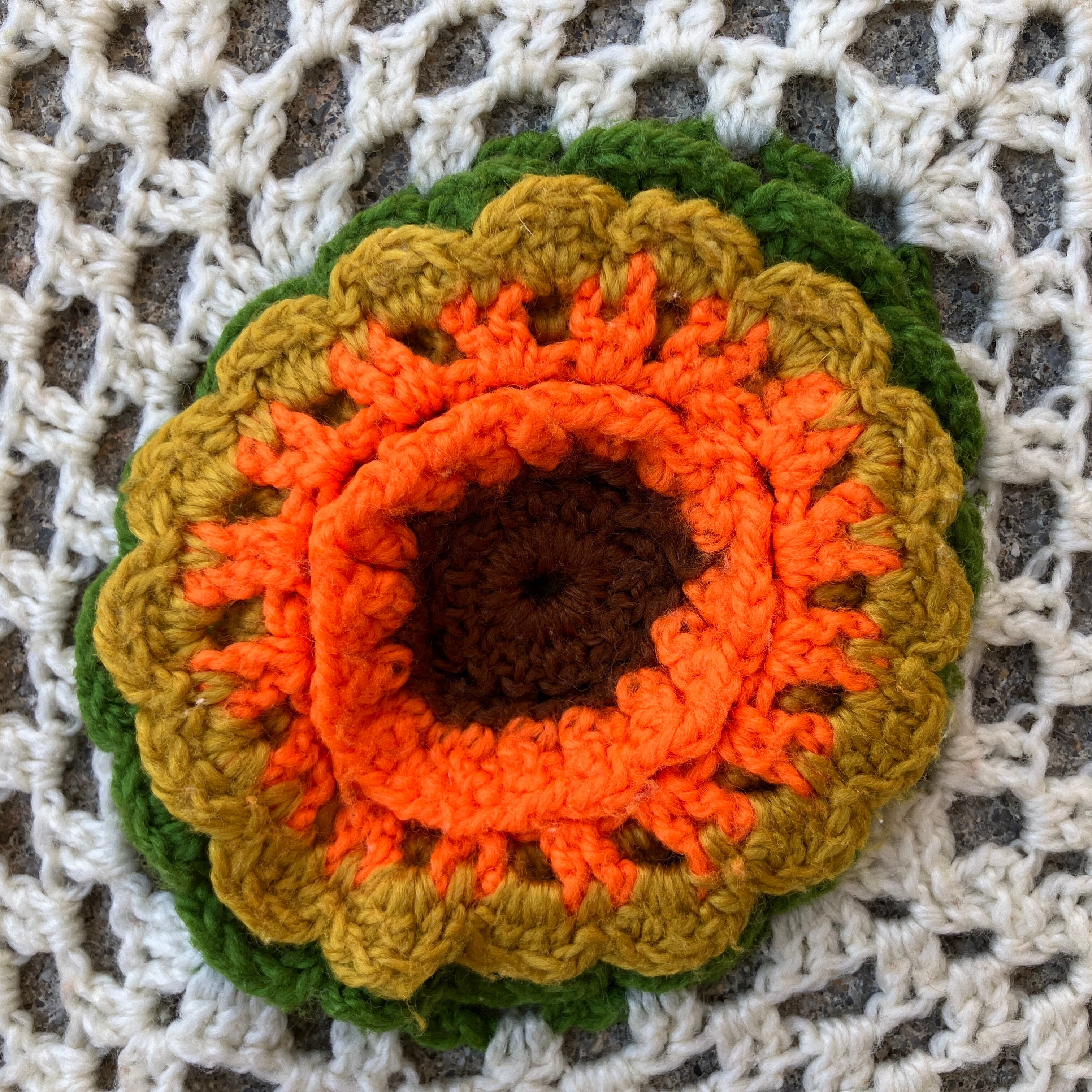 USED HANDMADE FLOWER PATTERN ブランケット